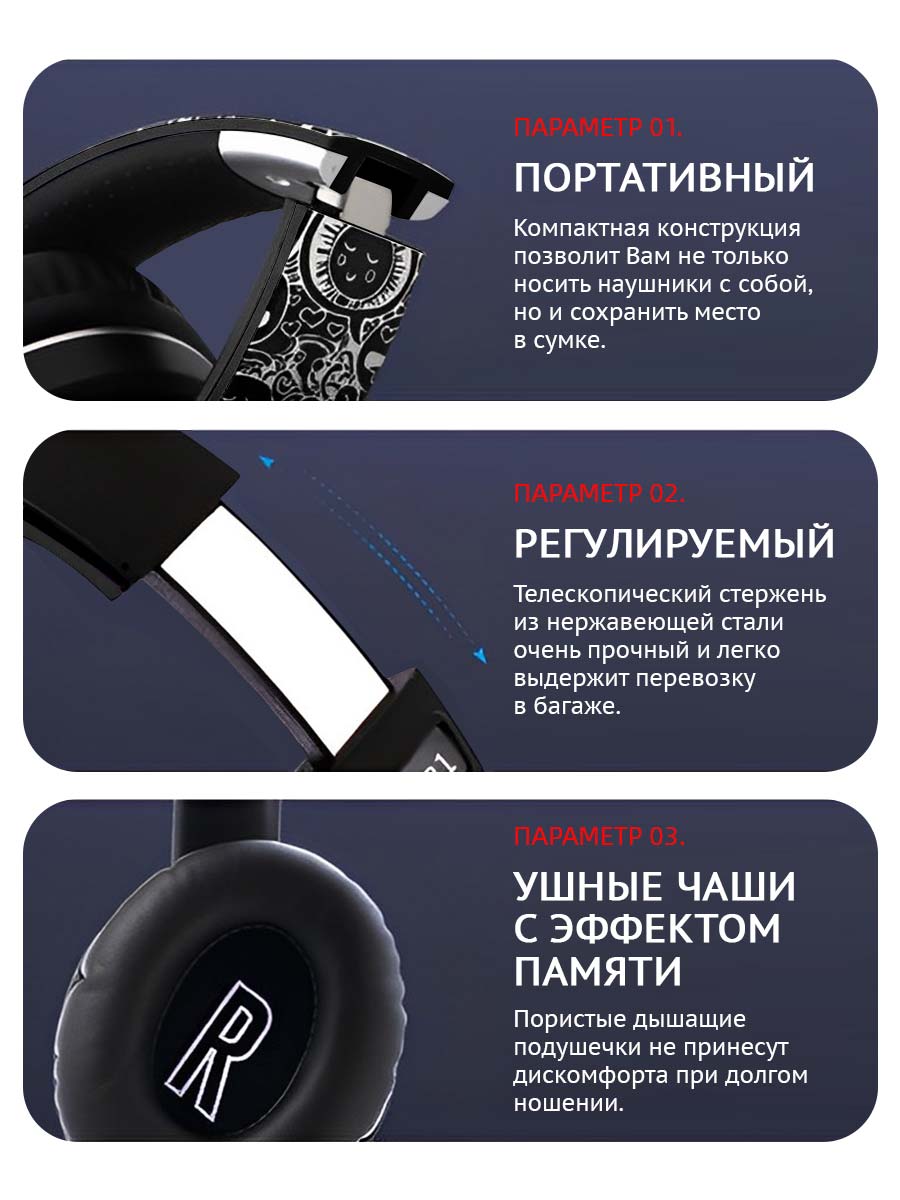 Беспроводные наушники с микрофоном и умным шумоподавлением имеют превосходное качество звука и удобное управление. Складные полноразмерные наушники имеют несколько режимов воспроизведения музыки и дают вам полную свободу выбора, поддерживают micro SD-карты и превращают наушники в MP3-плеер - слушайте музыку без подключения к смартфону или ноутбуку.