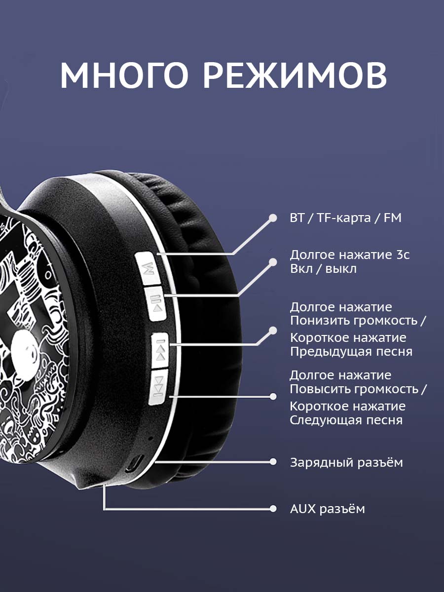 Дерзкие новые беспроводные наушники, с нанесенным вручную красивым принтом в стиле граффити, никого не оставят без внимания и создаст красочную атмосферу и поднимет настроение вам и окружающим. То, что нужно современному жителю мегаполиса – комфорт, функционал и обалденный дизайн!