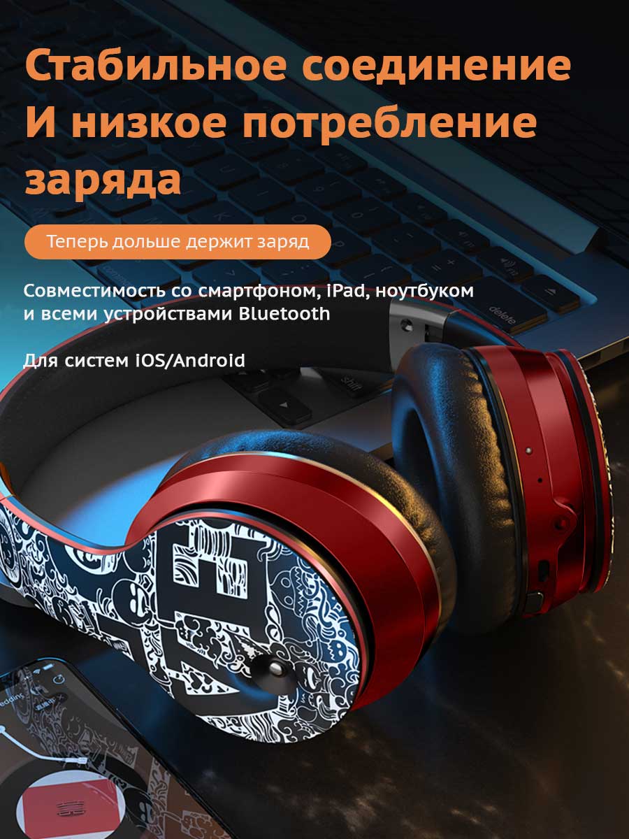 Современный чип BT 5.0 имеет стабильное соединение, высокоточную передачу, без задержек и перебоев связи. Также наушники отлично подходят для общения благодаря отсоединяемому микрофону. Беспроводные наушники большие подойдут для любого телефона с Bluetooth на Android, iOS, Windows (наушники для iPhone-айфона, Samsung-самсунг, Huawei, Xiaomi, Honor и др), так и для подключения к ПК, поэтому могут использоваться как игровые наушники, для работы, отдыха или учебы.