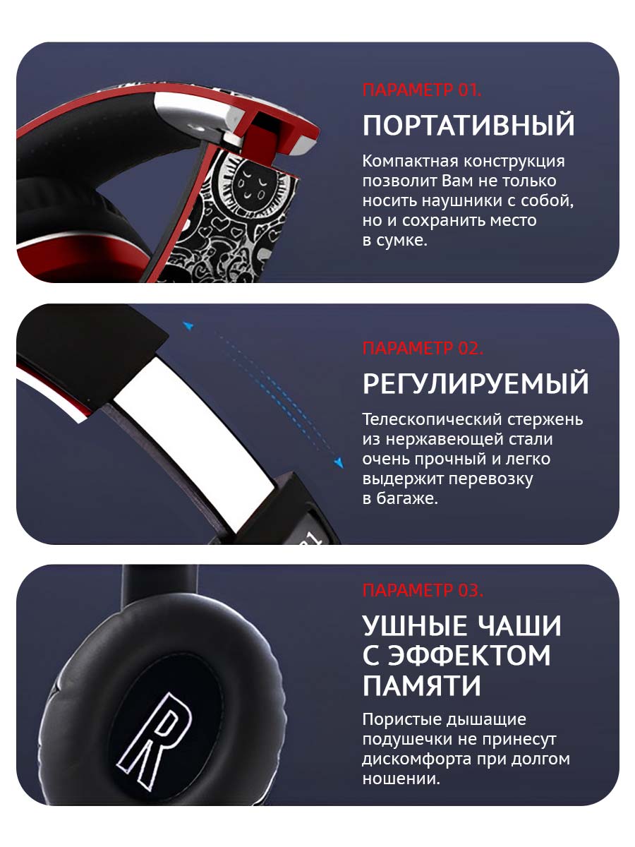 Беспроводные наушники с микрофоном и умным шумоподавлением имеют превосходное качество звука и удобное управление. Складные полноразмерные наушники имеют несколько режимов воспроизведения музыки и дают вам полную свободу выбора, поддерживают micro SD-карты и превращают наушники в MP3-плеер - слушайте музыку без подключения к смартфону или ноутбуку.