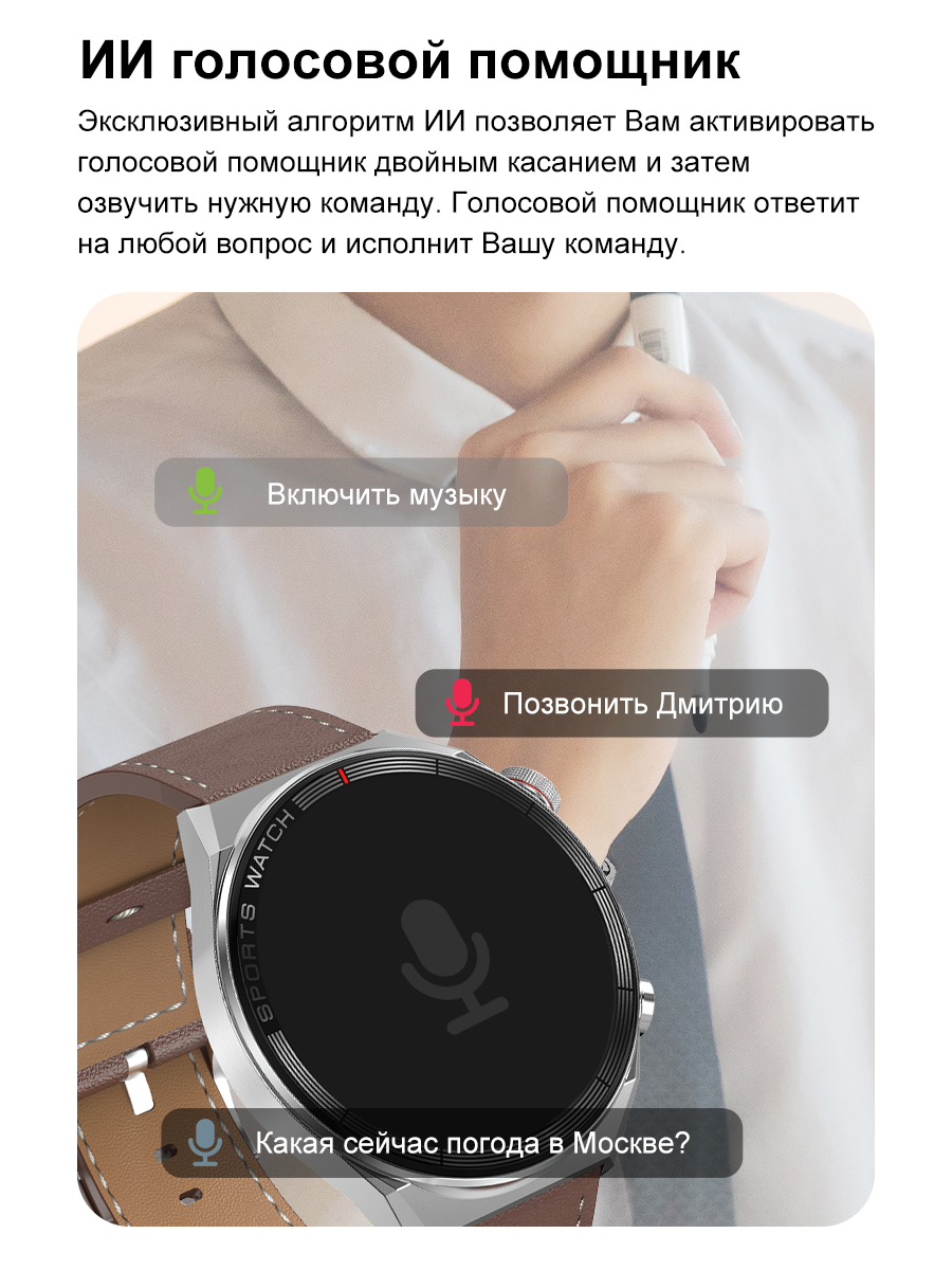 Новые мужские смарт-часы Smart Watch BT Call GPS в металлическом корпусе c функциями для отслеживания своего здоровья*, также с функциями фитнес-трекера и получения уведомлений о звонках и сообщениях, которые приходят на телефон. Смарт-часы оснащены большим дисплеем 1.5" с высоким разрешением 454х454 px и новейшей технологией матрицы.