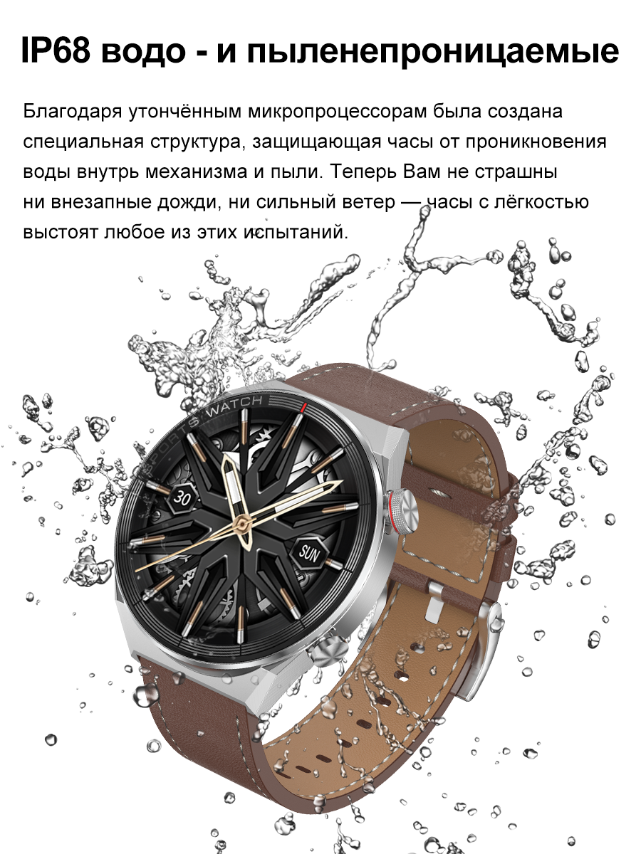 Степень влагозащиты в часах IP68, это подразумевает полное погружение под воду до 30 минут. Соблюдая условия рейтинга IP68, в часах можно плавать без вреда для устройства. Устойчивость к воздействию влаги и пыли не является постоянной и может снижаться при естественном износе.