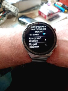 После смартбраслета (а это единственное, что у меня было из смарт техники) ощущение конечно отличные. Больше экран, больше функционала, порадовало присутствие встроенного динамика. Но \»ложечка дегтя\» все таки присутствует. Во первых функия always on display не работает (прошу не путать с основным циферблатом). При ее включении часы загорается буквально на одну-две секунды и тут же гаснут, при этом в настройках кроме выбора темы (стрелки или цифры) ничего нет. С циферблатом такая проблема отсутствует — можно поставить от 5 секунд активного экрана до постоянного. К сожалению опечалило то, что в режиме управления музыкой нет абсолютно никакой информации (ни имени исполнителя, ни названия трека), то есть просто перемотка или стоп. Так же при подключении беспроводных наушников режим управления с часов иногда перестает работать.