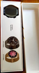 Долго выбирал по виду, пересмотрел много прямоугольных, но уж совсем одинаково они выглядят. На круглом дисплее все читается хорошо, управление удобное плюс верхняя кнопка может изменять масштаб и пролистывать вверх вниз. При звонке собеседника слышно отлично, меня тоже. В комплект положили второй ремешок — на фото. Спасибо продавцу!