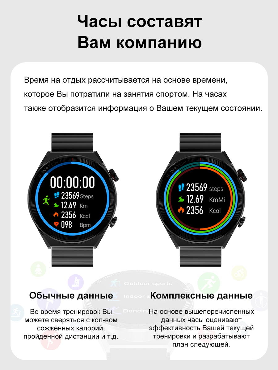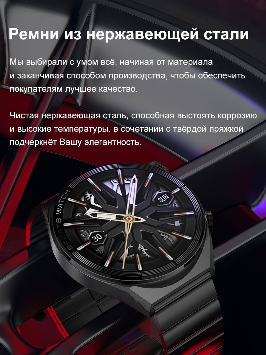 Новые мужские смарт-часы Smart Watch BT Call GPS в металлическом корпусе c функциями для отслеживания своего здоровья*, также с функциями фитнес-трекера и получения уведомлений о звонках и сообщениях, которые приходят на телефон. Смарт-часы оснащены большим дисплеем 1.5" с высоким разрешением 454х454 px и новейшей технологией матрицы.
