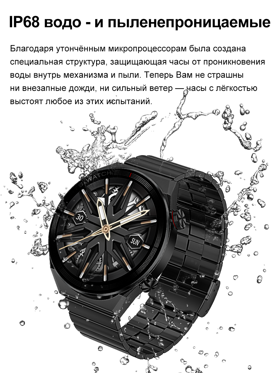 Степень влагозащиты в часах IP68, это подразумевает полное погружение под воду до 30 минут. Соблюдая условия рейтинга IP68, в часах можно плавать без вреда для устройства. Устойчивость к воздействию влаги и пыли не является постоянной и может снижаться при естественном износе.