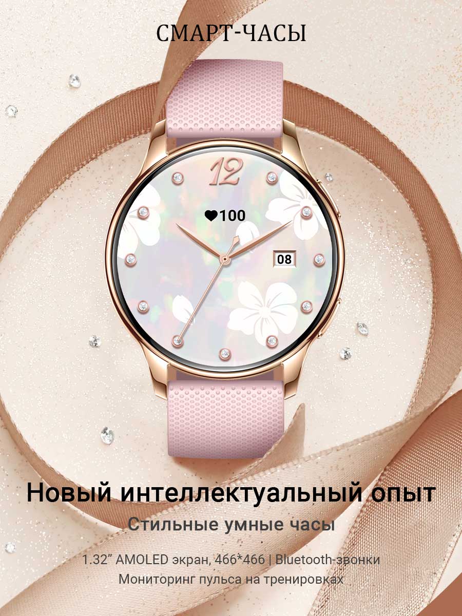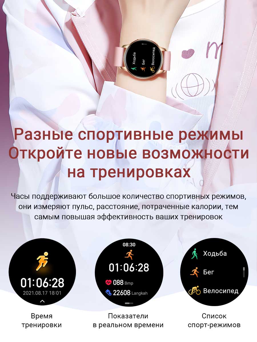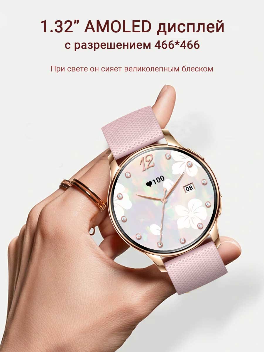 • Модель умных часов сочетает в себе современный и деликатный дизайн, сочетающий в себе практичность и легкость. Толщина корпуса всего 11 мм. Смарт-часы комплектуются двумя ремешками: элегантным металлическим для особых случаев и удобным силиконовым для повседневного использования.