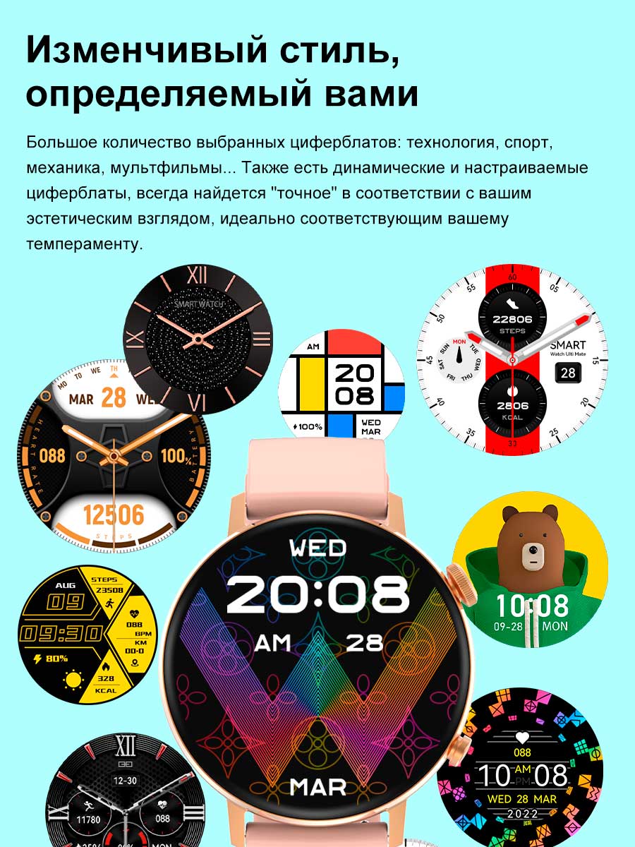 - Сменные циферблаты (200+ персонализированных циферблатов и возможность установить свое фото)