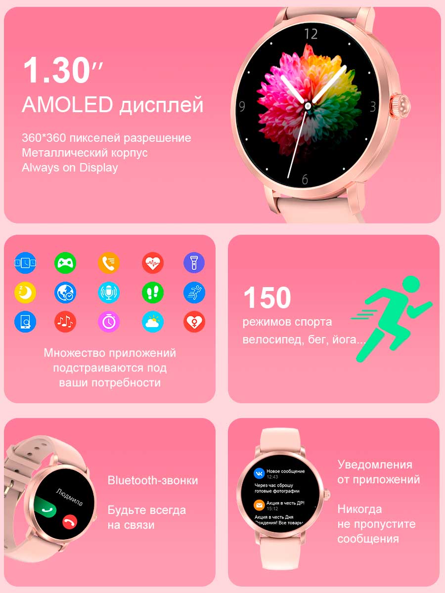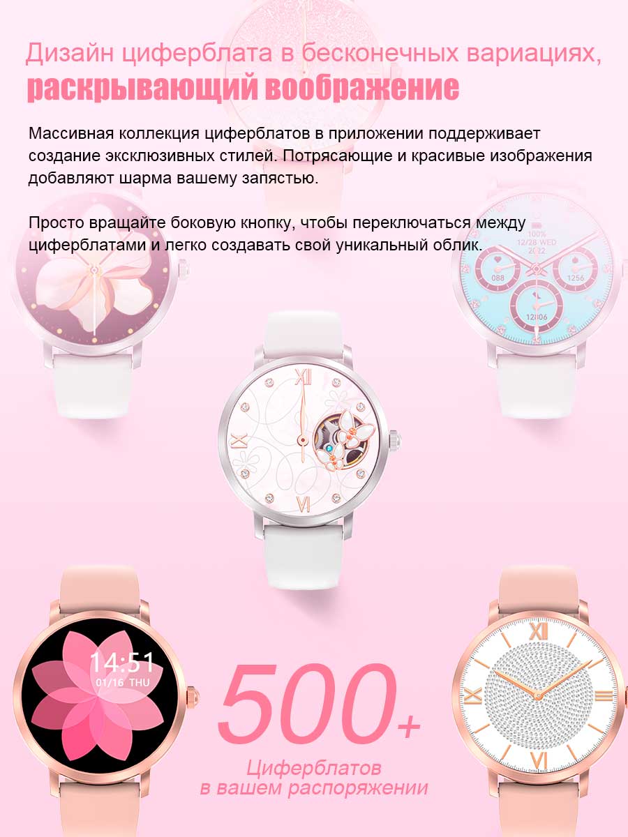 - Сменные циферблаты (200+ персонализированных циферблатов и возможность установить свое фото)