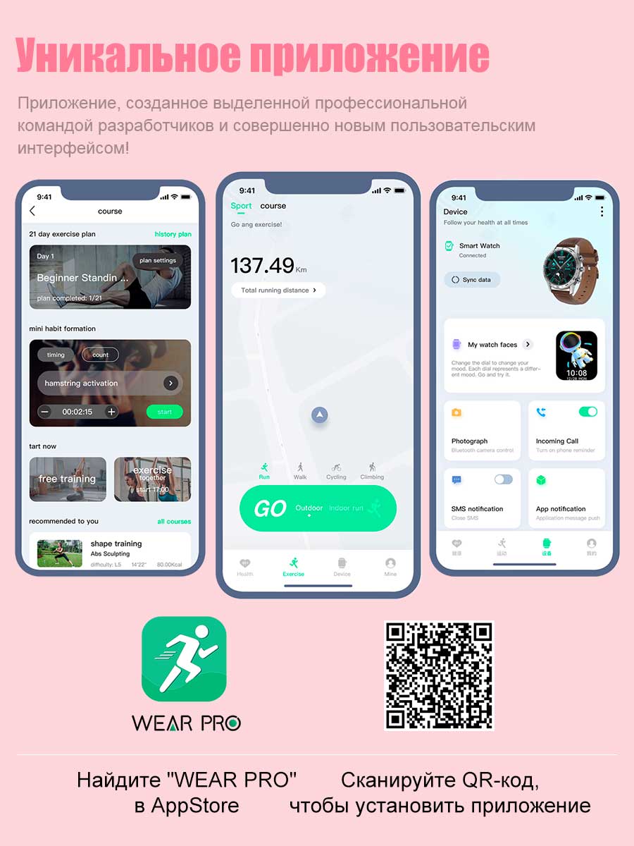Для синхронизации смарт-часов со смартфонов, требуется установить приложение WearPro.