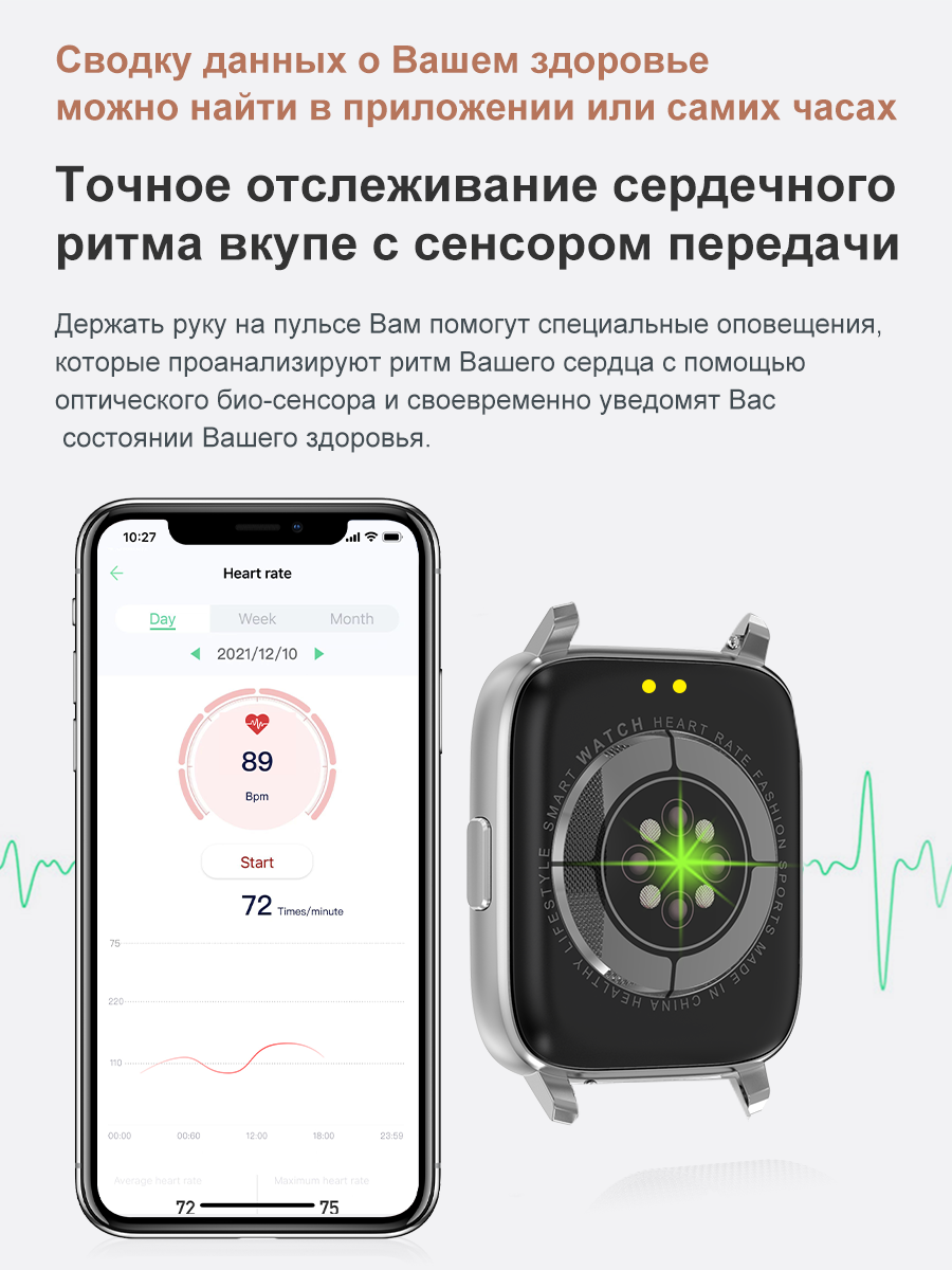 *Подробная инструкция по настройке часов и скачиванию приложения будет прилагаться к часам.