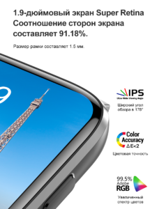 - Имеют большой и удобный в использовании Super Retina 1,9-дюймовый полноразмерный HD-экран с высоким разрешением 240*283'.