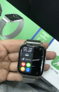 - Смарт-часы оснащены водонепроницаемым корпусом и ремешком, который представлен в 2ух вариантах: металлический (черный и серебристый цвет) и силиконовый (черный и серебристый цвет).