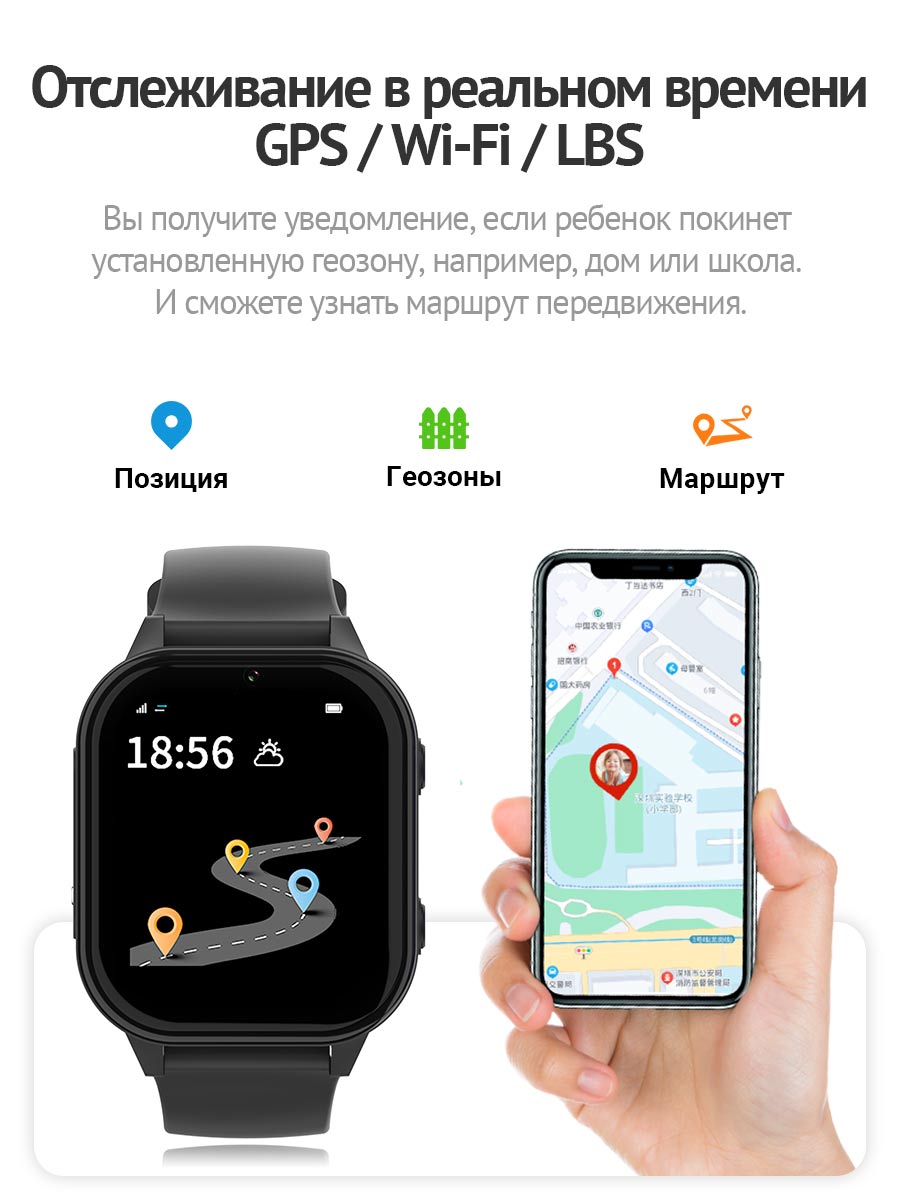 - WIFI. В зданиях и закрытых помещениях GPS-сигнал искажается, поэтому при наличии рядом точки доступа wifi, часы отправляют данные о геопозии роутера в родительское приложение. Погрешность до 70м.