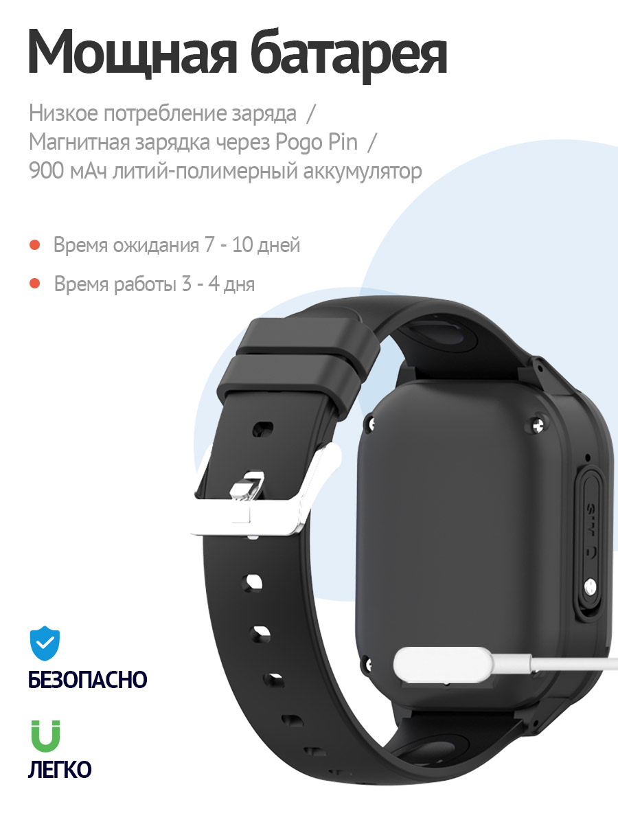 - Увеличенный объем батареи (900 mA*h, что позволяет пользоваться часами несколько суток без зарядки)