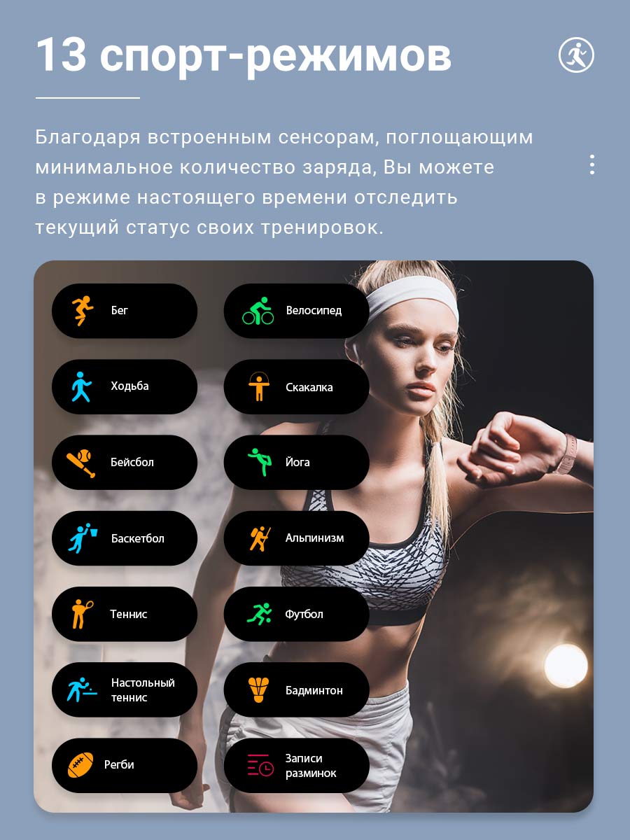 - Шагомер, отслеживание пройденного расстояния, кол-во потраченных калорий