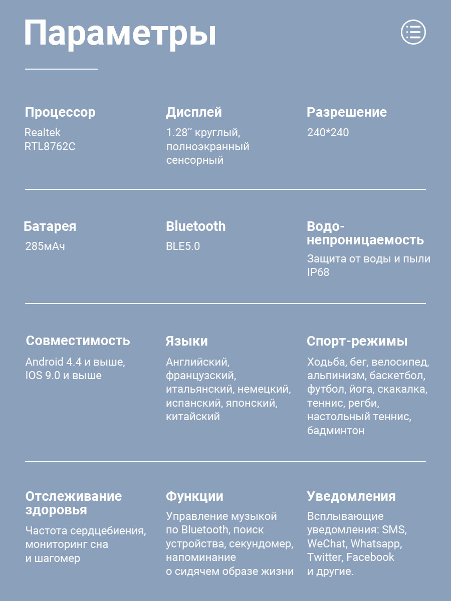 *Подробная инструкция по настройке часов и скачиванию приложения будет прилагаться к часам.