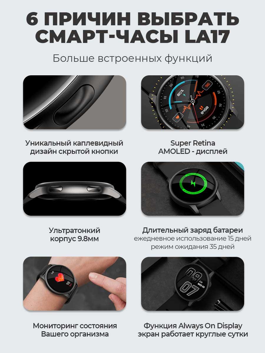 Совершенно новая модель смарт-часов Smart Watch LA17  (новинка 2023г.) c функциями для отслеживания своего здоровья, также с функциями фитнес-трекера и получения уведомлений о звонках и сообщениях, которые приходят на телефон. Смарт часы оснащены современным и надежным дисплеем 1.35' с разрешением 360*360 px и новейшей технологией матрицы - AMOLED.
