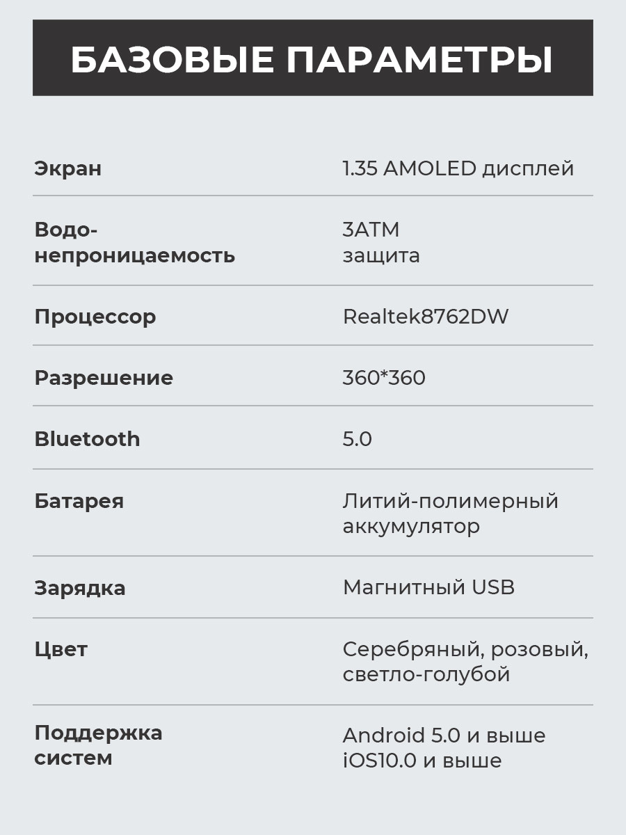 *Подробная инструкция по настройке часов и скачиванию приложения будет прилагаться к часам.