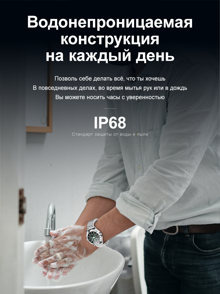 Степень влагозащиты в часах IP68, это подразумевает полное погружение под воду до 30 минут. Соблюдая условия рейтинга IP68, в часах можно плавать без вреда для устройства. Устойчивость к воздействию влаги и пыли не является постоянной и может снижаться при естественном износе.