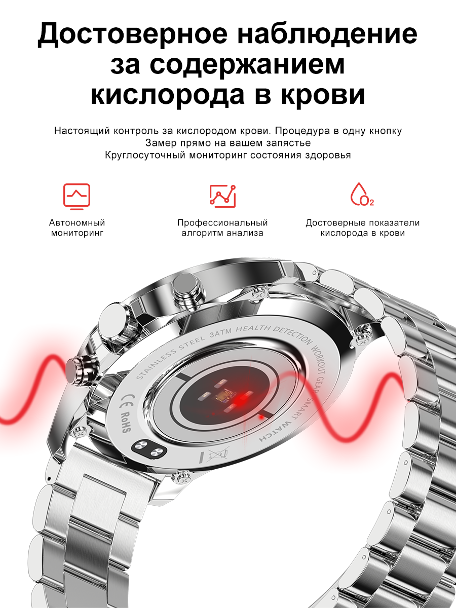 Данный товар не является медицинским изделием и не подходит для выполнения медицинской диагностики. С помощью данного прибора пользователь может получить ориентировочные данные о состоянии своего здоровья. Снятие показаний происходит посредством оптического датчика и использует технологию неинвазивного скринингового метода - фотоплетизмографию.
