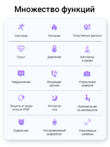 • 8 спортивных режимов активности (ходьба, бег, велоспорт, скалолазание, йога, баскетбол, скакалка, эллиптические упражнения)