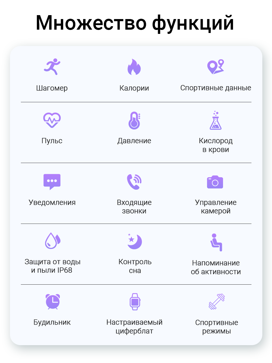 Модель умных часов сочетает в себе отличный дизайн и большой современный функционал, необходимый любому человеку в наше время.