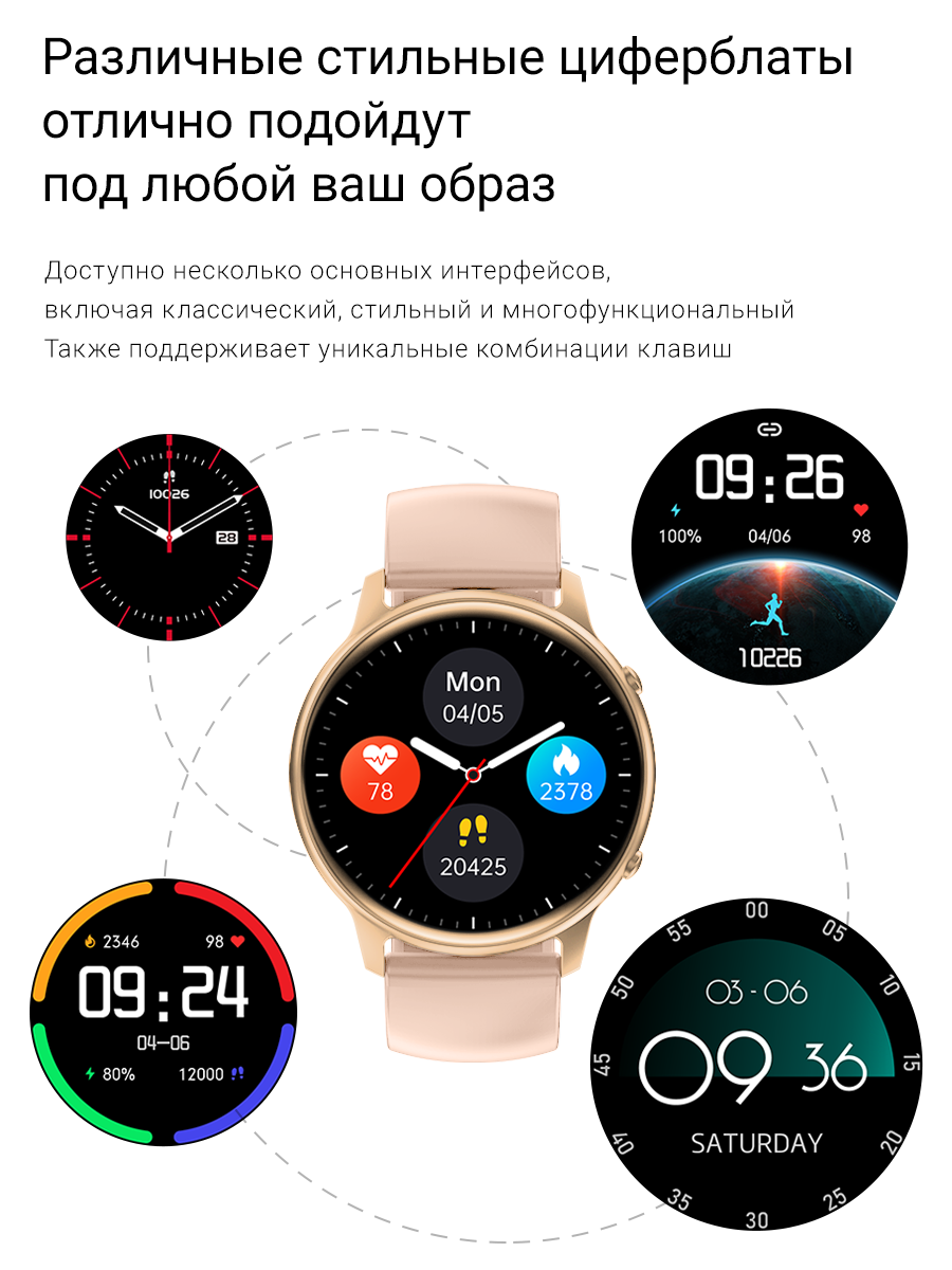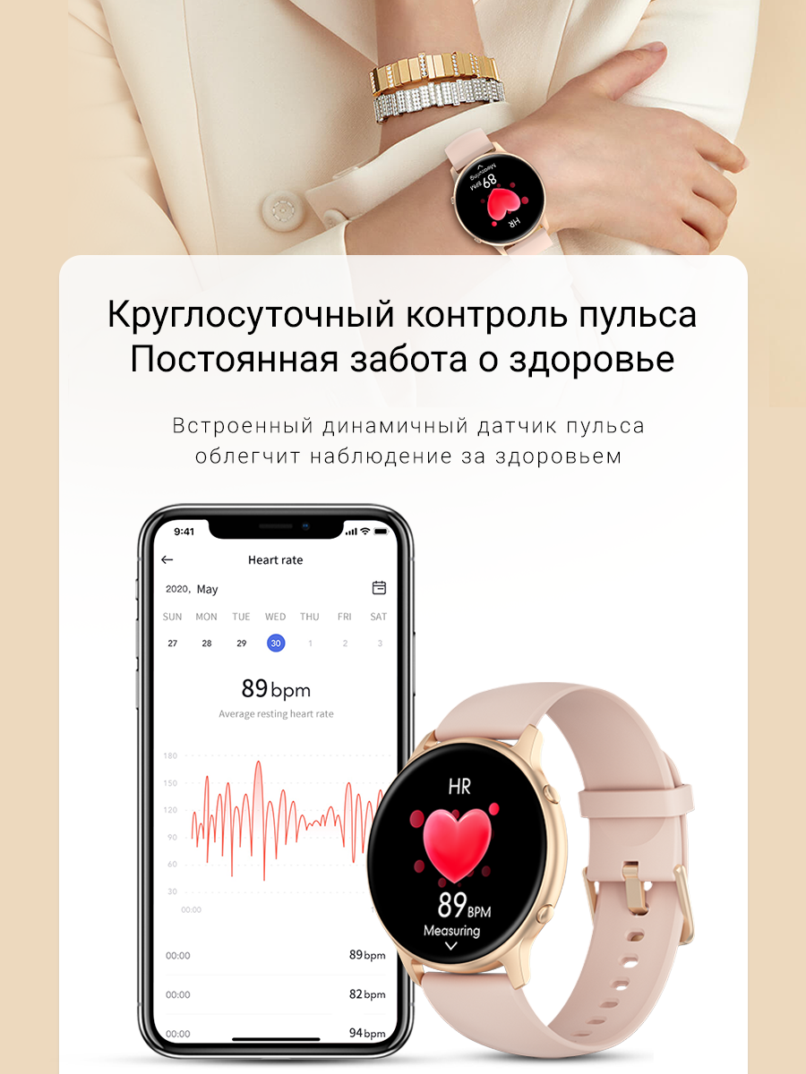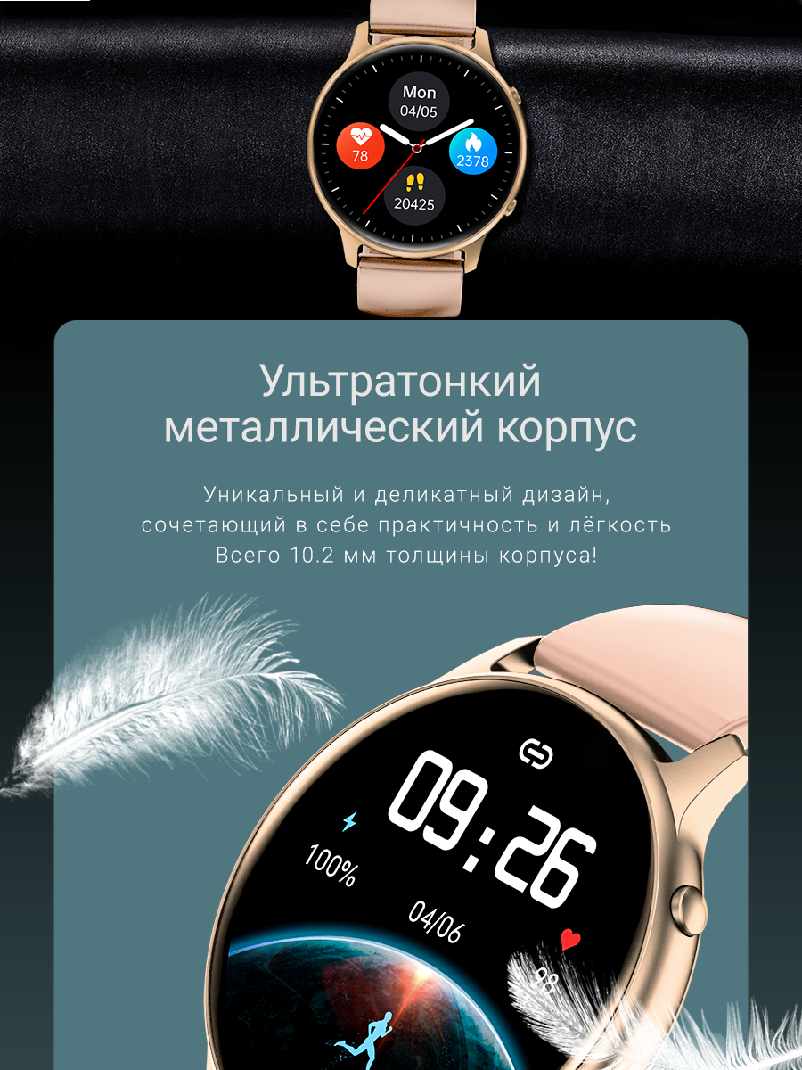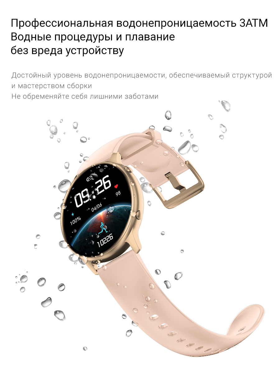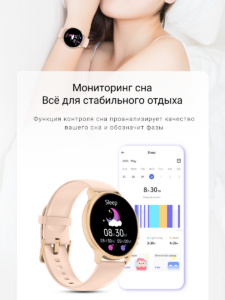 Изящный подарок, весит не больше перышка. Удобный ремешок, приятно пахнет. На экране яркое изображение, много спортивных функций и шагомер с сожженными калориями за день. Еще есть функции контроля здоровья — это измерить пульс, давление и кислород в крови — результаты довольно точные. Самое главное это что часы уведомляют о звонках и сообщениях — телефон можно держать беззвучным, часы всегда среагируют и не разбудят детей. Заявлено, что часы водонепроницаемые, обязательно попробую их в бассейне и дополню отзыв.