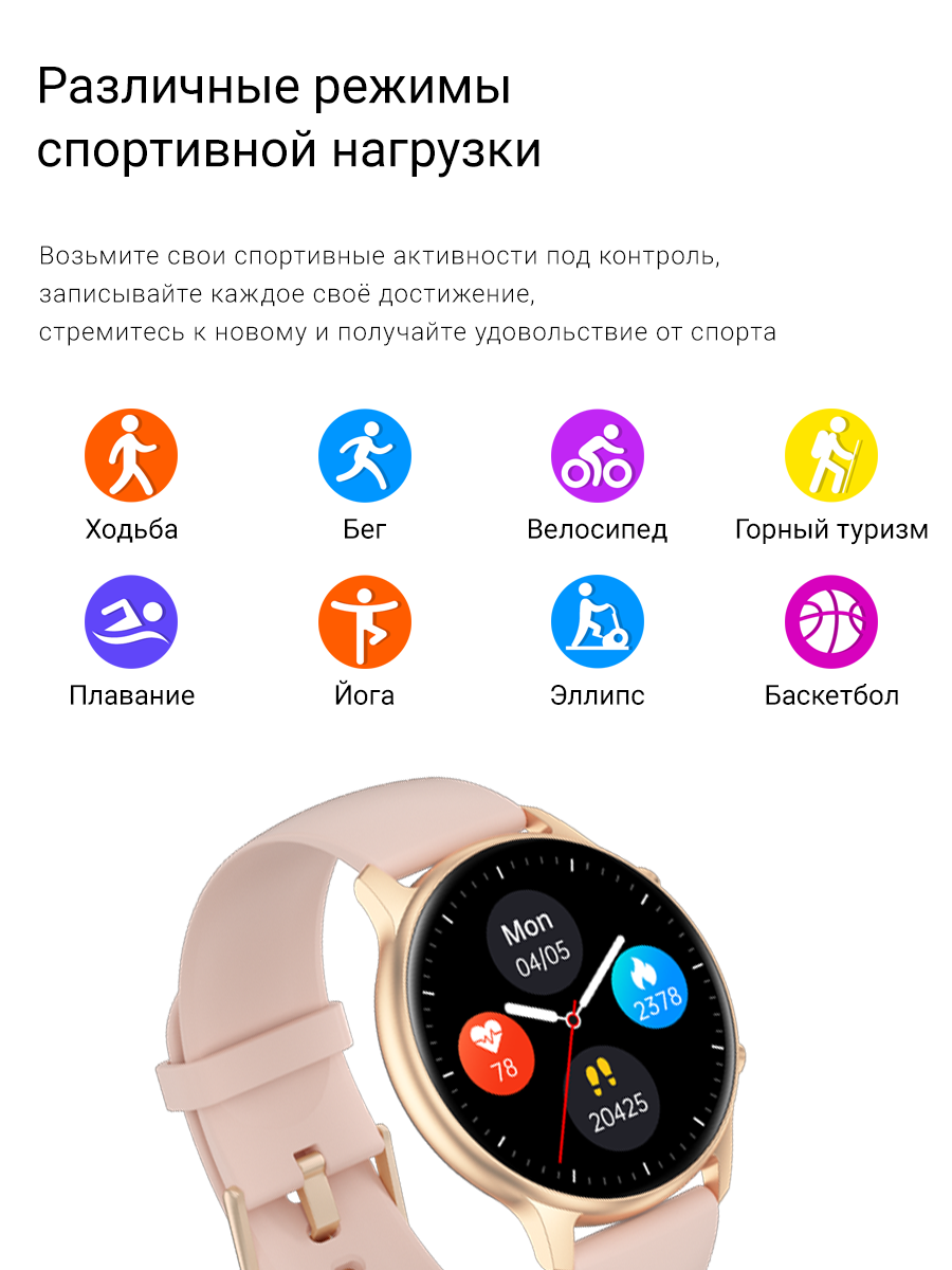 - 8 спортивных режимов активности (ходьба, бег, велоспорт, скалолазание, йога, баскетбол, скакалка, эллиптические упражнения)