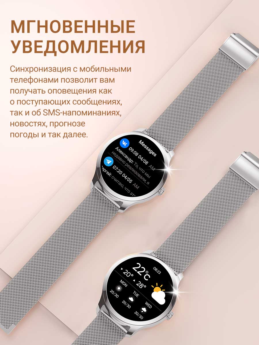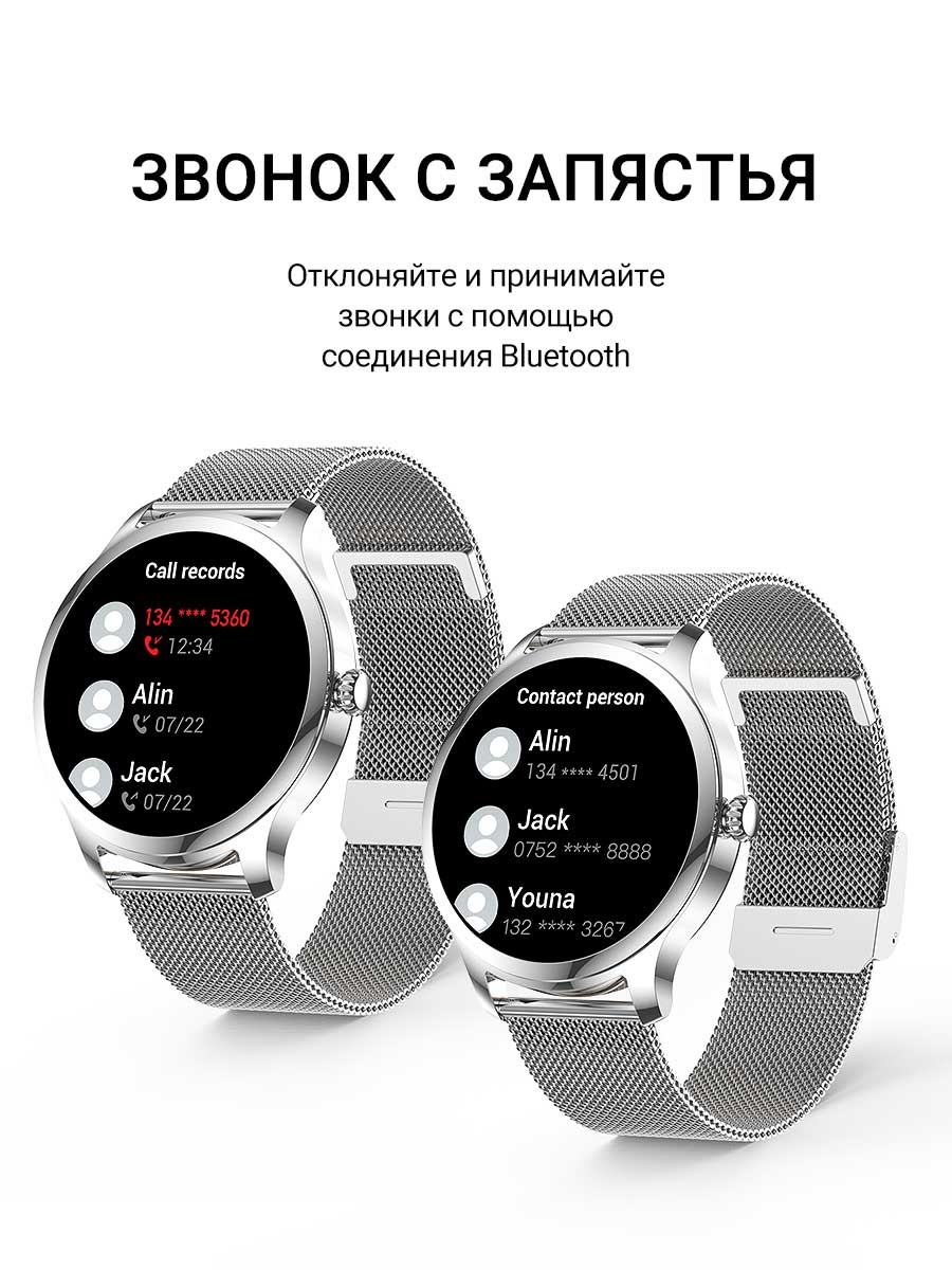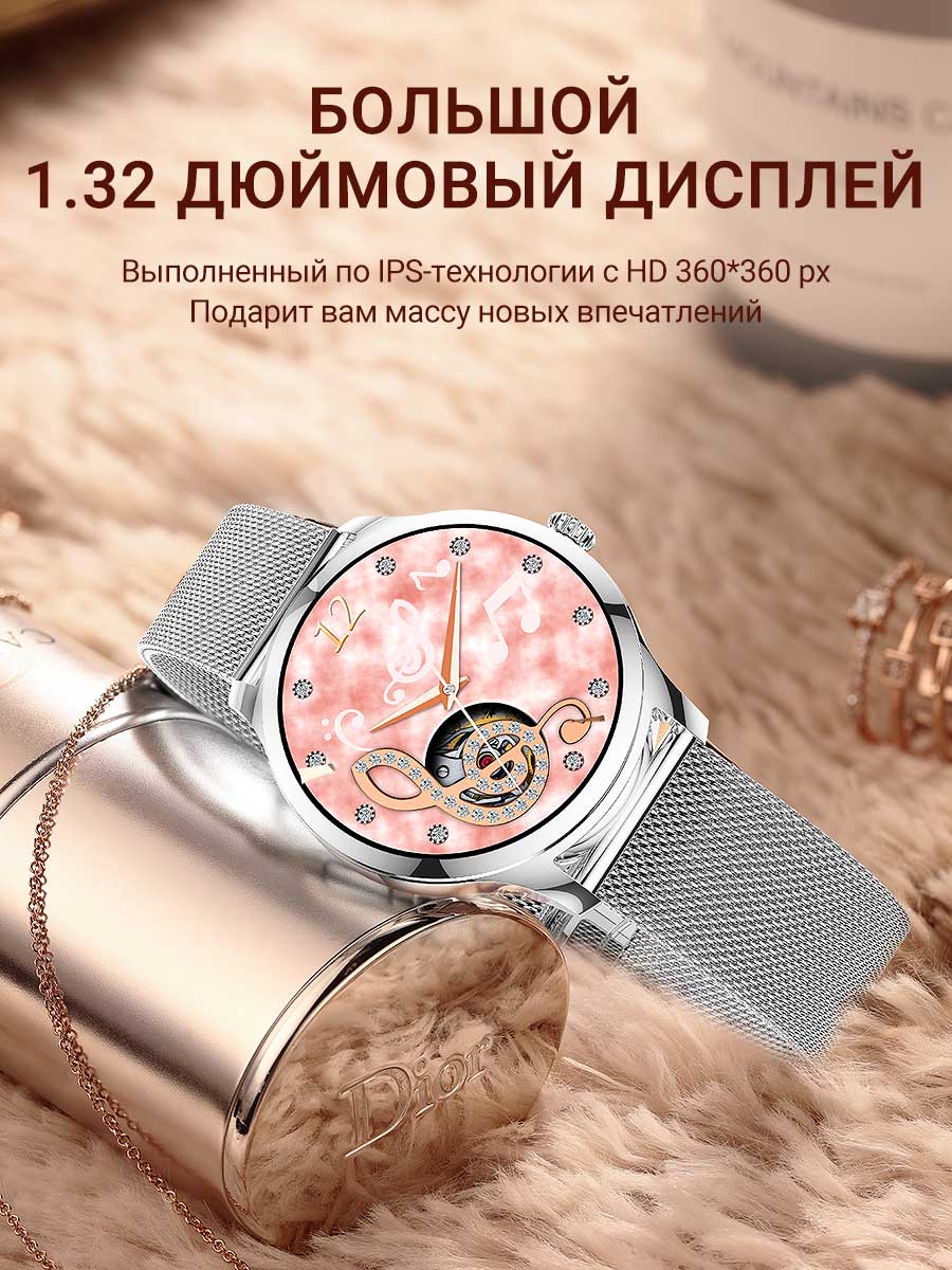 Совершенно новые смарт часы Smart Watch LW92 с металлическим ремешком в стиле миланского плетения станут идеальным аксессуаром для любой модницы. Смарт часы с функциями телефона, блютуз-звонков, отслеживания своего здоровья, также с функциями фитнес-трекера и получения уведомлений о звонках, сообщениях и уведомлений от приложений, которые приходят на телефон. Смарт-часы оснащены большим HD дисплеем 1.32″ с высоким разрешением 360х360 px и новейшей технологией матрицы.