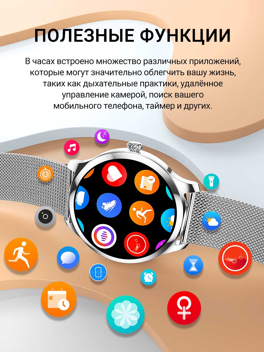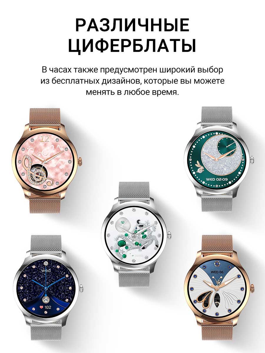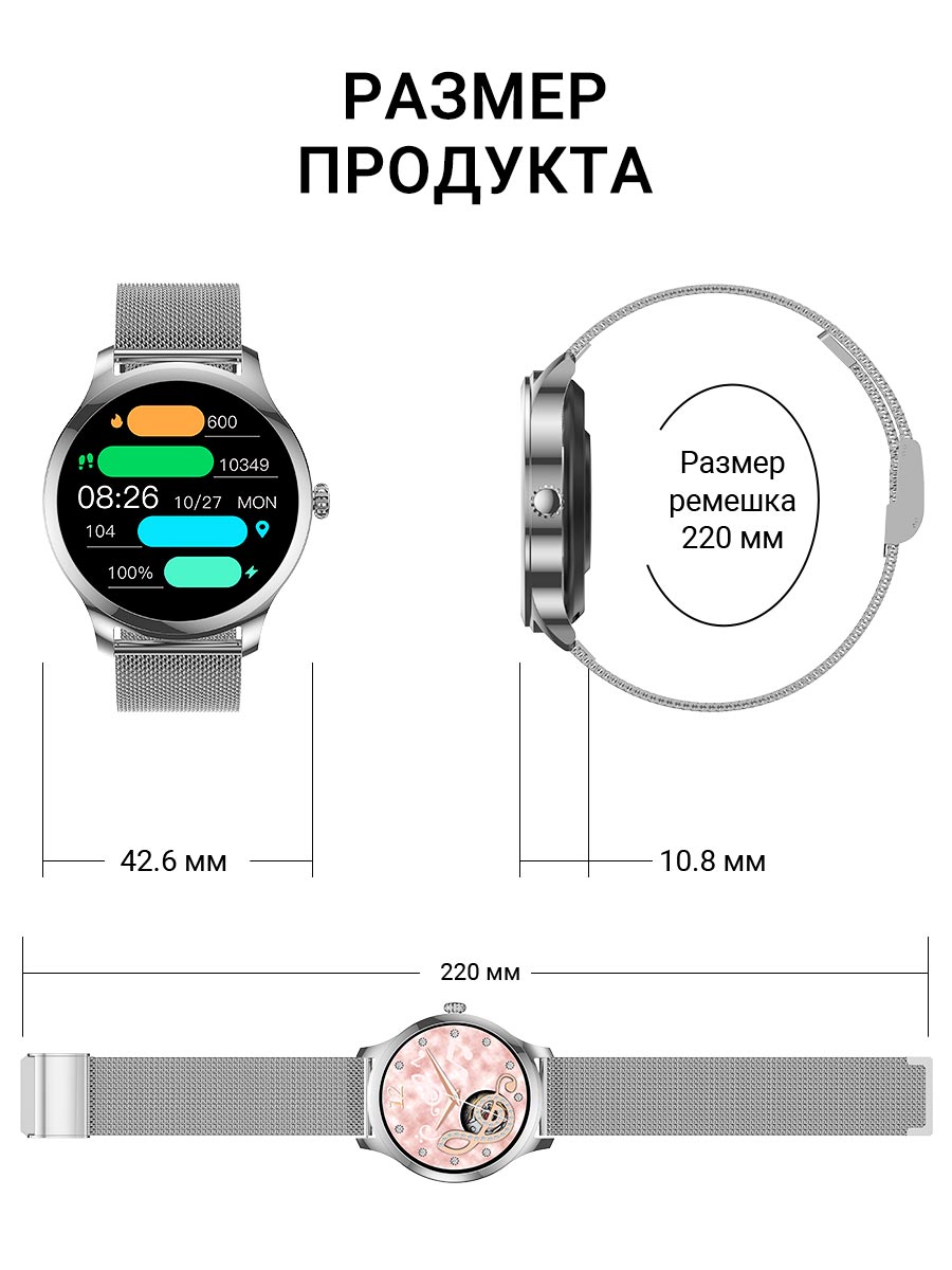 Совершенно новые смарт часы Smart Watch LW92 с металлическим ремешком в стиле миланского плетения станут идеальным аксессуаром для любой модницы. Смарт часы с функциями телефона, блютуз-звонков, отслеживания своего здоровья, также с функциями фитнес-трекера и получения уведомлений о звонках, сообщениях и уведомлений от приложений, которые приходят на телефон. Смарт-часы оснащены большим HD дисплеем 1.32″ с высоким разрешением 360х360 px и новейшей технологией матрицы.
