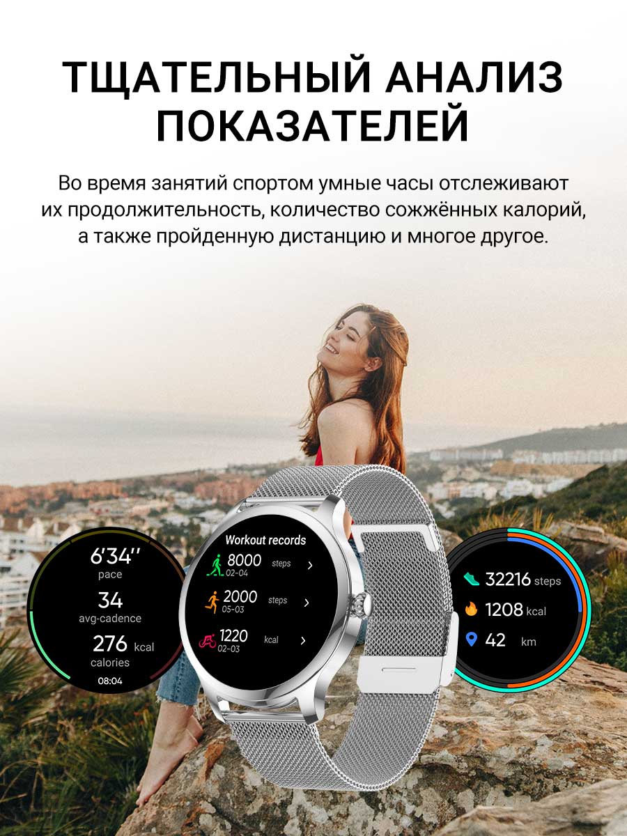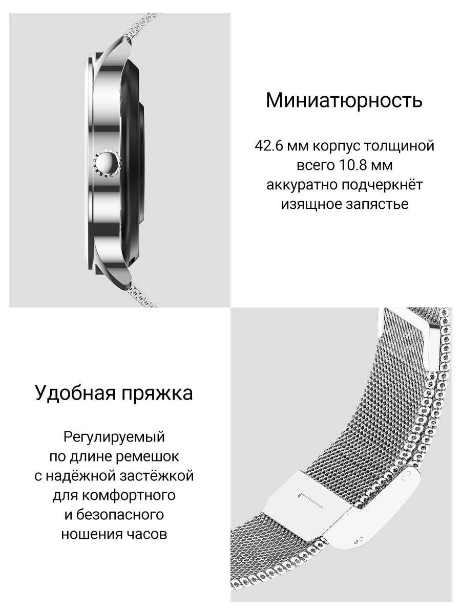 - Модель умных часов сочетает в себе современный и классический дизайн, сочетающий в себе практичность и легкость. Толщина корпуса всего 12 мм.