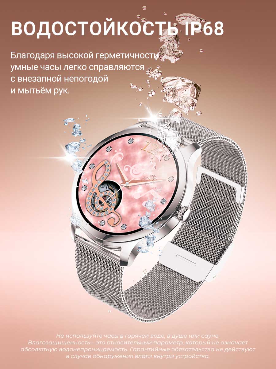Степень влагозащиты в часах IP68, это подразумевает полное погружение под воду до 30 минут. Соблюдая условия рейтинга IP68, в часах можно плавать без вреда для устройства. Устойчивость к воздействию влаги и пыли не является постоянной и может снижаться при естественном износе.
