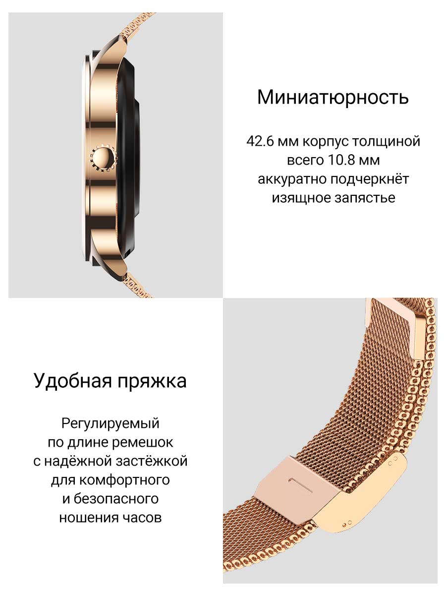 - Модель умных часов сочетает в себе современный и классический дизайн, сочетающий в себе практичность и легкость. Толщина корпуса всего 12 мм.