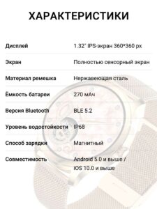 Совершенно новые смарт часы Smart Watch LW92 с металлическим ремешком в стиле миланского плетения станут идеальным аксессуаром для любой модницы. Смарт часы с функциями телефона, блютуз-звонков, отслеживания своего здоровья, также с функциями фитнес-трекера и получения уведомлений о звонках, сообщениях и уведомлений от приложений, которые приходят на телефон. Смарт-часы оснащены большим HD дисплеем 1.32″ с высоким разрешением 360х360 px и новейшей технологией матрицы.