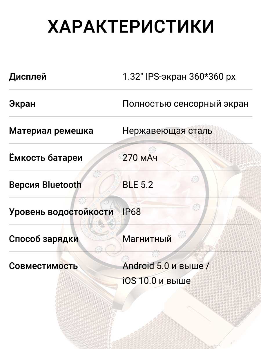 *Подробная инструкция по настройке часов и скачиванию приложения будет прилагаться к часам.