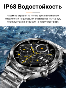Степень влагозащиты в часах IP67, это подразумевает полное погружение под воду до 30 минут. Соблюдая условия рейтинга IP68, в часах можно плавать без вреда для устройства. Устойчивость к воздействию влаги и пыли не является постоянной и может снижаться при естественном износе.