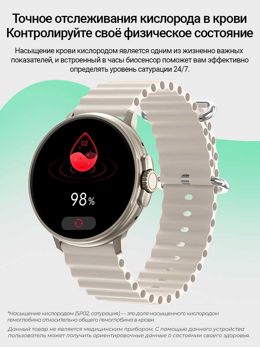 - Измерение кислорода в крови* (+ круглосуточный режим измерения)