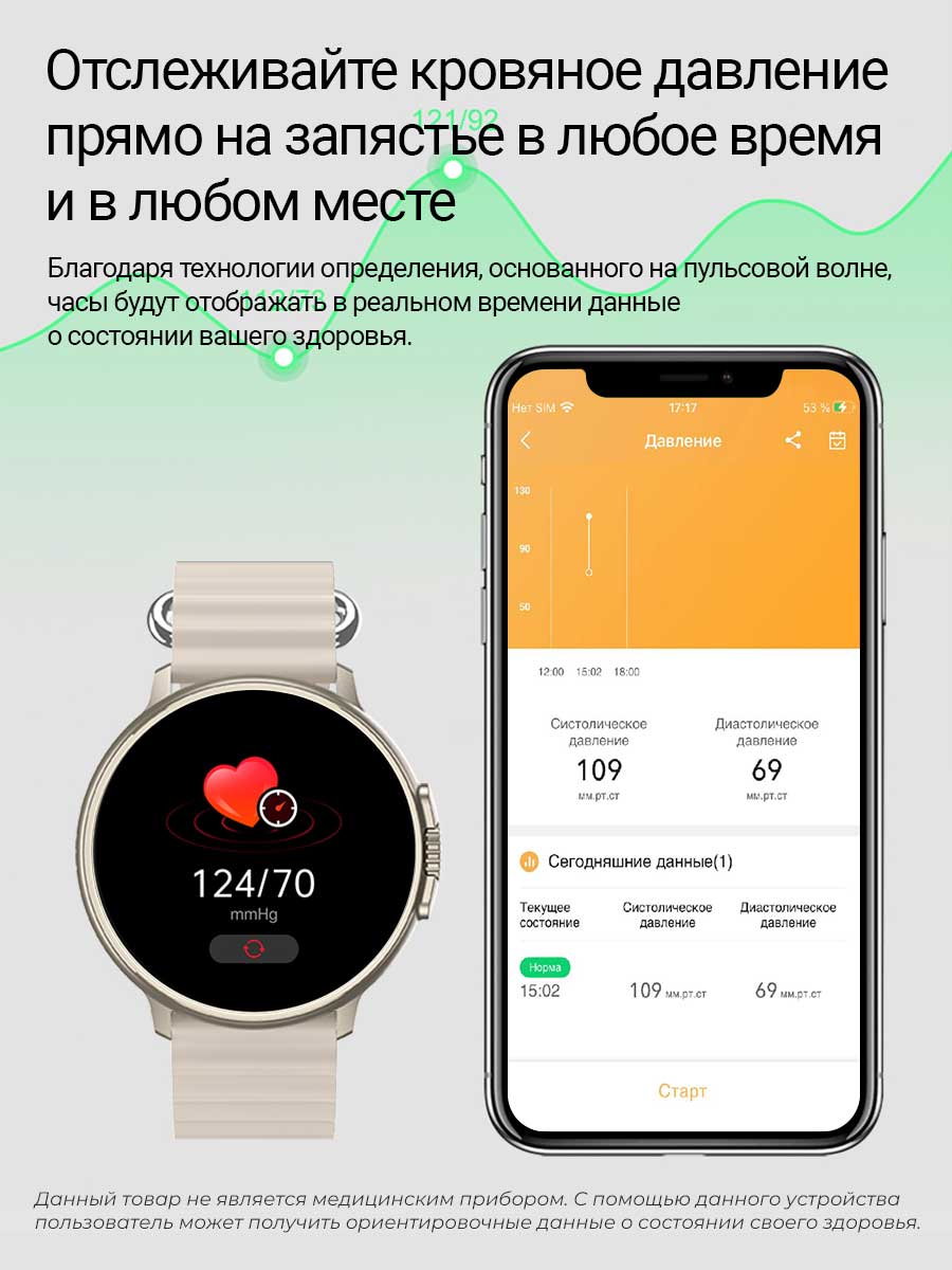 Данный товар не является медицинским изделием и не подходит для выполнения медицинской диагностики. С помощью данного прибора пользователь может получить ориентировочные данные о состоянии своего здоровья. Снятие показаний происходит посредством оптического датчика и использует технологию неинвазивного скринингового метода - фотоплетизмографию.