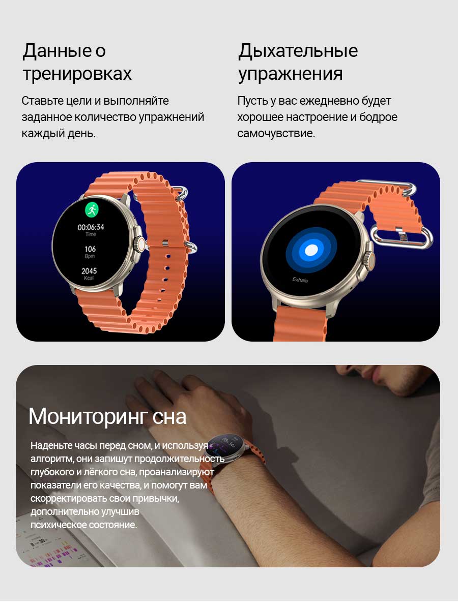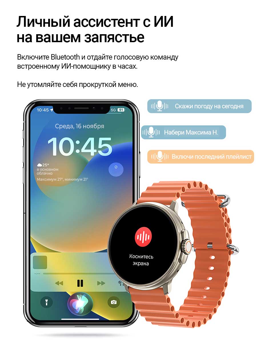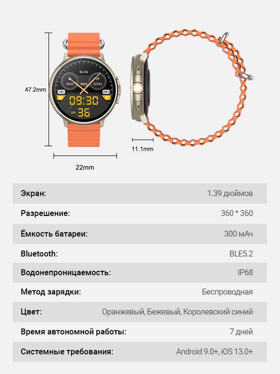 • Модель умных часов сочетает в себе современный дизайн и функциональность, сочетающий в себе практичность и надежность. Существенно большой экран часов с возможностью смены циферблатов для создания уникальности и выражения личного стиля.