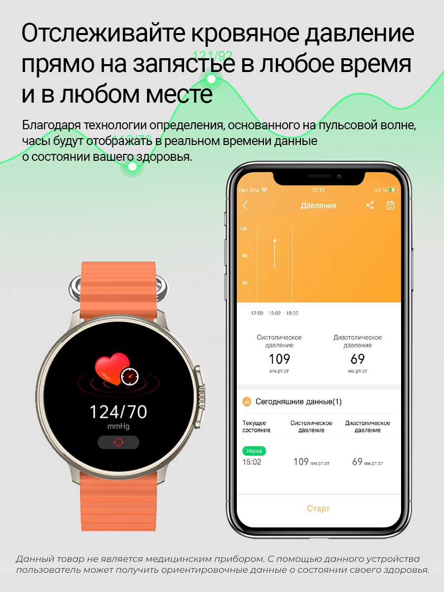 Данный товар не является медицинским изделием и не подходит для выполнения медицинской диагностики. С помощью данного прибора пользователь может получить ориентировочные данные о состоянии своего здоровья. Снятие показаний происходит посредством оптического датчика и использует технологию неинвазивного скринингового метода - фотоплетизмографию.