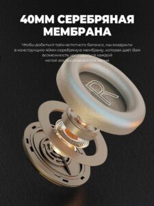 Блютуз наушники оснащены 40мм мембраной из серебряной пластины, что дает высокопрозрачное разрешение и высокое качество звука.