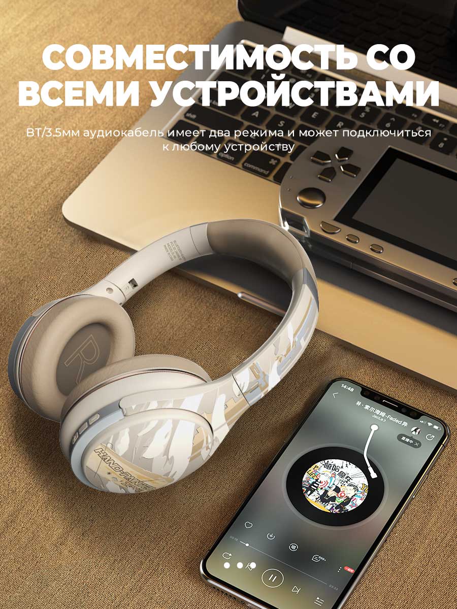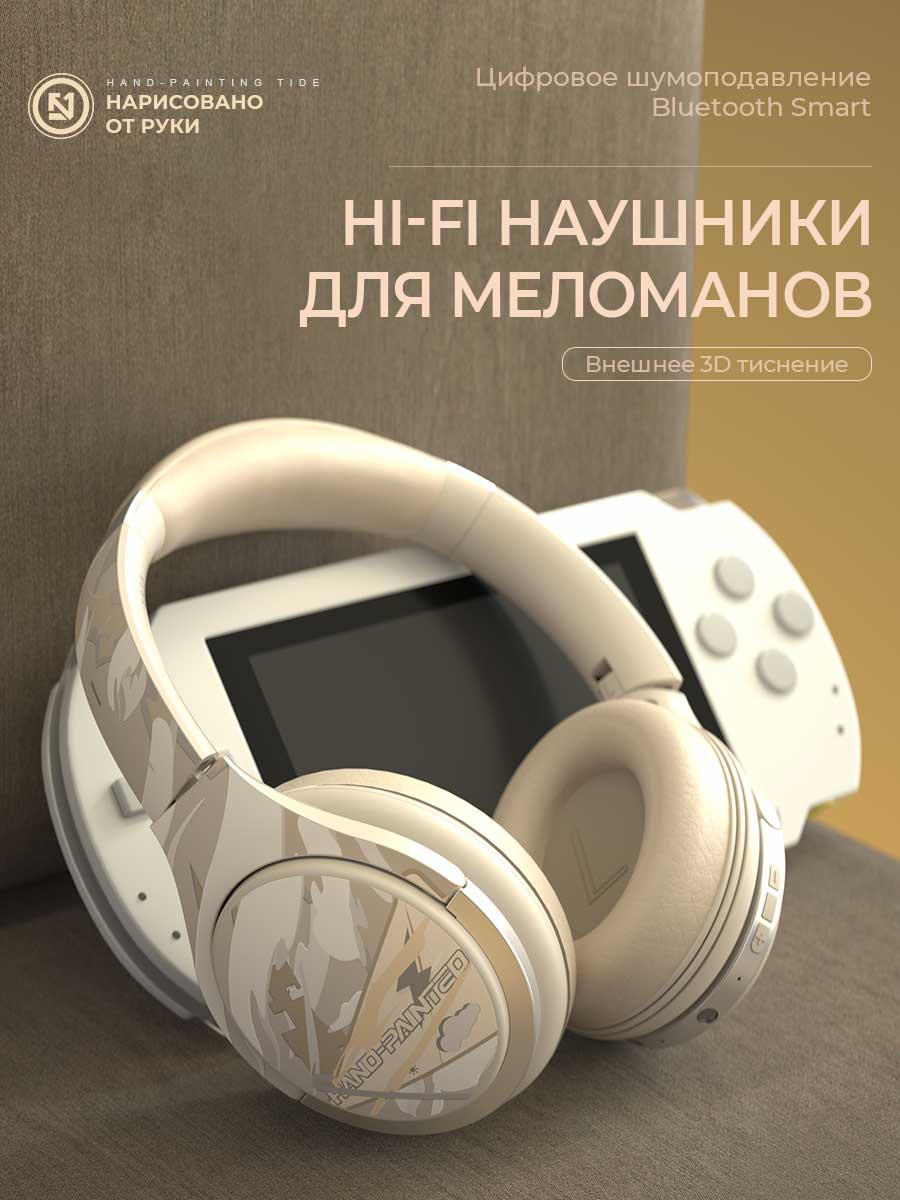 Новые сверхмощные беспроводные игровые наушники, созданные по инновационной технологии, имеют превосходное качество звука и удобное управление. Необычный красочный дизайн, нанесенный вручную, подчеркнут вашу индивидуальность и выделят вас из толпы!  В создании наушников задействована технология  шумоподавления, оснащенная прямым и обратным откликом, и обеспечит Вам объемный звук и отсутствие посторонних шумов. А благодаря встроенной в микрофон функции шумоподавления окружения, Ваш голос станет слышно еще лучше! Складные полноразмерные наушники имеют несколько режимов воспроизведения музыки и дают вам полную свободу выбора, также поддерживают игровой режим. Встроенный оптимизированный комплект чипов обеспечит минимальную задержку, и звуки в игре будут слышны в режиме реального времени.