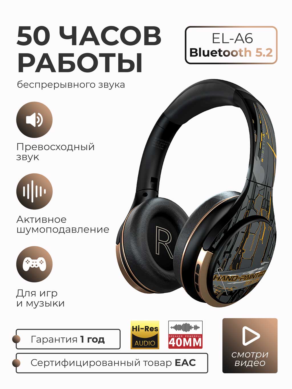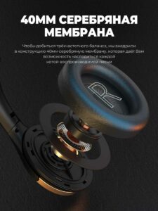 Блютуз наушники оснащены 40мм мембраной из серебряной пластины, что дает высокопрозрачное разрешение и высокое качество звука.