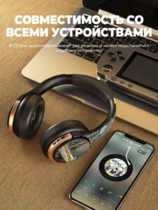 Современный чип BT 5.2 имеет стабильное соединение, высокоточную передачу, без задержек и перебоев связи. Также наушники отлично подходят для общения благодаря отсоединяемому микрофону. Беспроводные наушники большие подойдут для любого телефона с Bluetooth на Android, iOS, Windows (наушники для iPhone-айфона, Samsung-самсунг, Huawei, Xiaomi, Honor и др), так и для подключения к ПК, поэтому могут использоваться как игровые наушники (воспроизведение реалистичного 360-градусного звука, полностью погружающего вас в игру).