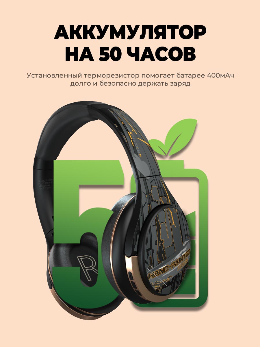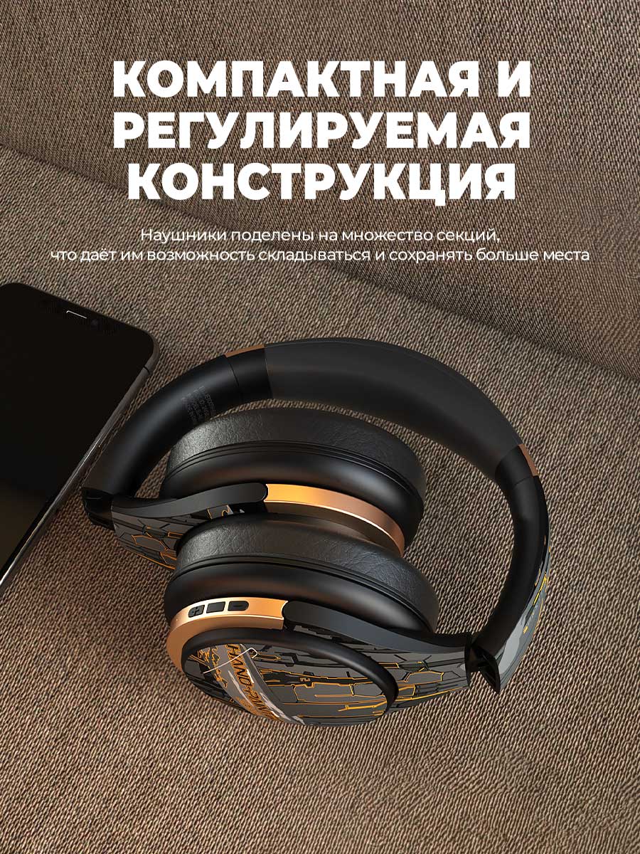 Новые сверхмощные беспроводные игровые наушники, созданные по инновационной технологии, имеют превосходное качество звука и удобное управление. Необычный красочный дизайн, нанесенный вручную, подчеркнут вашу индивидуальность и выделят вас из толпы!  В создании наушников задействована технология  шумоподавления, оснащенная прямым и обратным откликом, и обеспечит Вам объемный звук и отсутствие посторонних шумов. А благодаря встроенной в микрофон функции шумоподавления окружения, Ваш голос станет слышно еще лучше! Складные полноразмерные наушники имеют несколько режимов воспроизведения музыки и дают вам полную свободу выбора, также поддерживают игровой режим. Встроенный оптимизированный комплект чипов обеспечит минимальную задержку, и звуки в игре будут слышны в режиме реального времени.